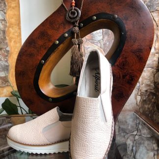 Bolichero sin cordon, troquelado en cuero con forro en badana y suela de goma